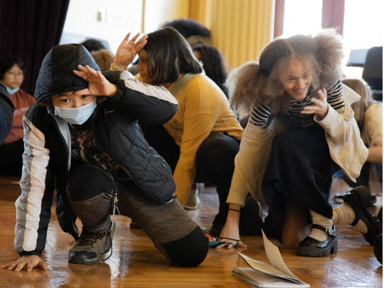 like cold readings and short movement sequences. The session will end with a final performance for students’ friends and